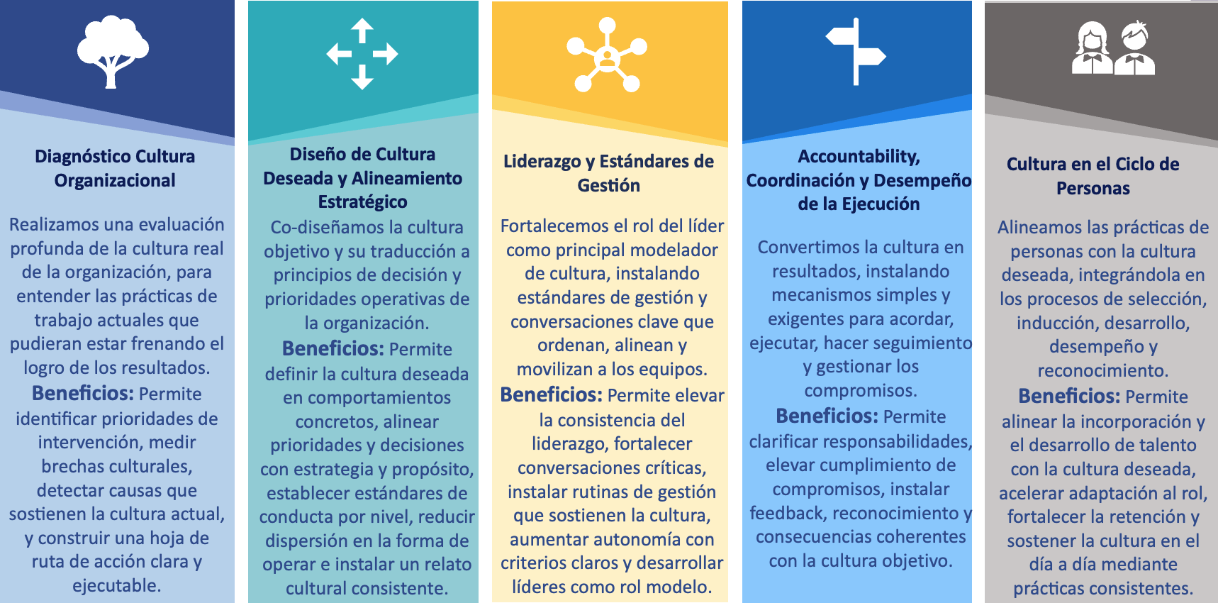 La cultura es el motor silencioso y la energía de tu negocio. En una empresa o área, donde cada persona cuenta y los recursos se optimizan al máximo, una cultura sólida puede marcar la diferencia entre sobrevivir y crecer. Te ayudamos a construir un entorno donde tus equipos estén alineados con tu propósito, comprometidos con los objetivos y dispuestos a adaptarse a los cambios.